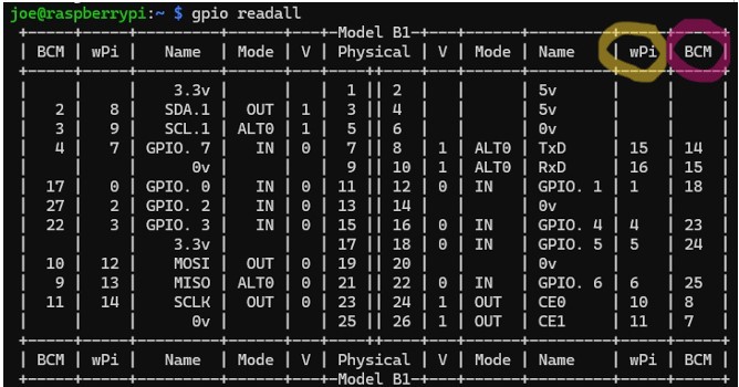 2. Type gpio readall
