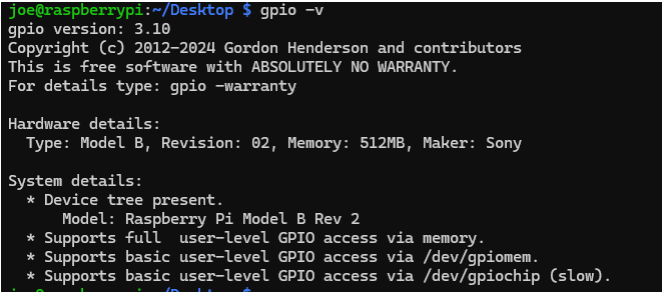 To verify if the WiringPI is installed and the Pinout